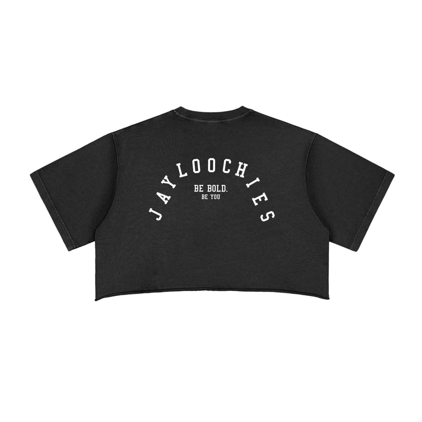 Snow-washed for a worn-in look, finished with raw edge detailing and a relaxed cropped fit. Designed for effortless wear in and out of the gym.